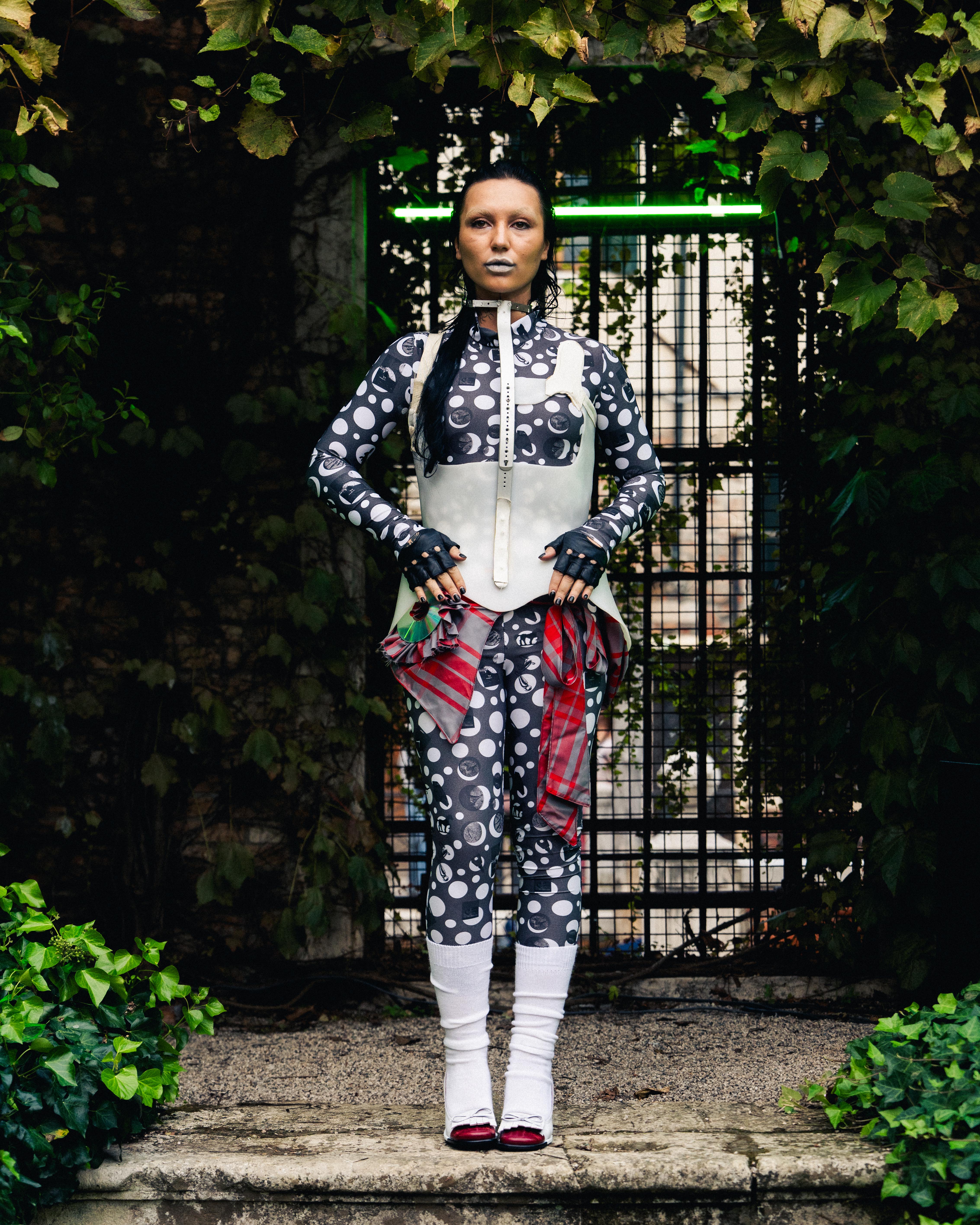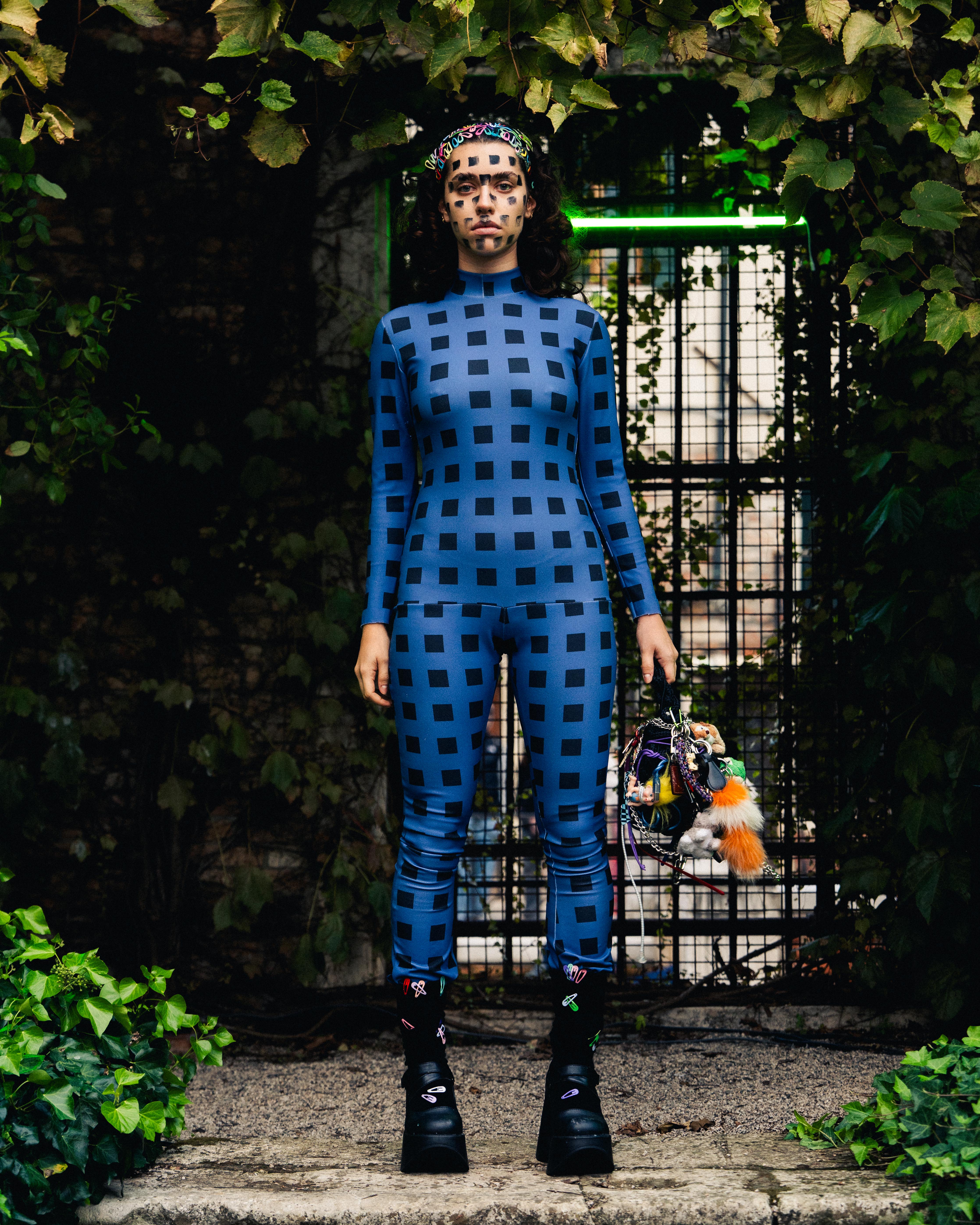 The collection was born in 2022 from a photograph of a small chair on the Berlin subway and from the decomposition of its elements: a backrest covered in printed carpet-like fabric, a plastic base. The patterns make “beautiful” what would otherwise be purely functional. The theory of beauty can be applied to everything, so why not use it to give value to an orthopedic tool such as a brace?I had to wear a brace for scoliosis since middle school and I hated it—I always tried to hide and disguise it. I was told too many times to “stay straight!”, and so all these elements came together. An orthopedic brace, different for each body, carries as its second skin a subway pattern from a European capital (Berlin, Paris, and London), no longer hidden but on display.The plastic corset thus becomes the protagonist in a grotesque simulation of dysmorphism, an alteration present to varying degrees in all bodies seated on public transport chairs.