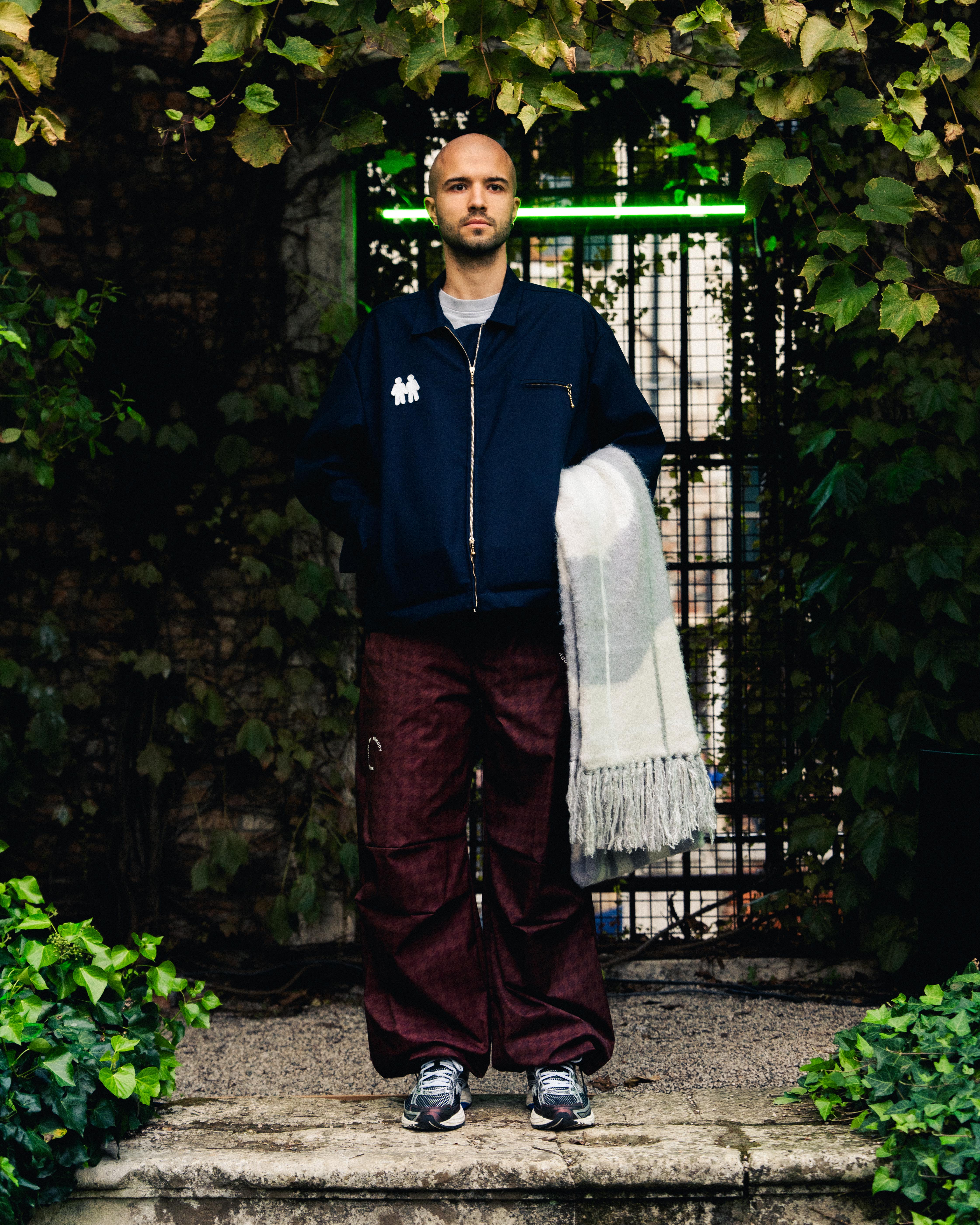 The theme developed is a personal vision of the contemporary urban wardrobe, made up of garments, fabrics, and patterns found in everyone’s closet.From formal office shirts to tailored suit trousers, from seasonal technical pieces to the softer, more comfortable pants of everyday life, passing through knitwear, accessories, plaid motifs, leather goods, and roomy carry-all bags.These garments are part of the daily life of those who inhabit chaotic urban centers. Clothes and accessories visible in everyday scenes—on crowded public transport, in offices, in squares, and on the streets—each with its own unique and unmistakable characteristics.These garments are reinterpreted by altering their structure, construction, and fit, pairing colorful plaid patterns with soft, muted tones, and incorporating handwork and mending.Using state-of-the-art processing and reuse techniques, along with innovative fabrics and prints, the elements of the wardrobe are revisited while preserving their core, their origin, and their function.Pieces of clothing for everyone (every day) and for every day.